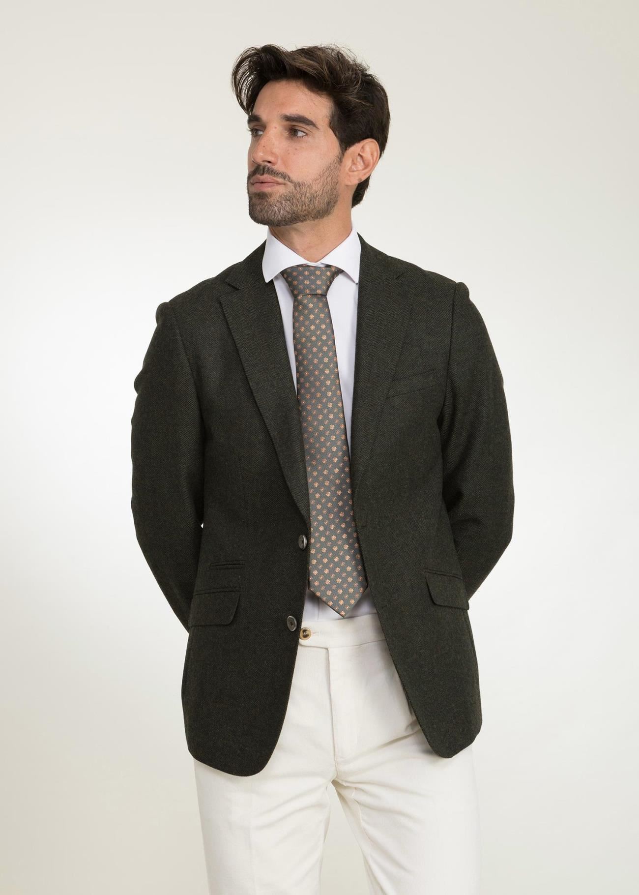 Esta americana de corte Regular Fit destaca por su elegancia clásica con un toque contemporáneo. Confeccionada con un tejido de alta calidad, presenta una solapa sencilla y bolsillos inclinados con cerillera, aportando un diseño más actual y diferenciado. Su color verde oscuro y su estructura ligera la convierten en una prenda versátil, ideal tanto para ocasiones formales como para un look casual refinado. Los detalles de confección y el corte equilibrado garantizan una silueta favorecedora y cómoda, perfecta para el hombre que busca estilo y distinción en su vestimenta diaria.