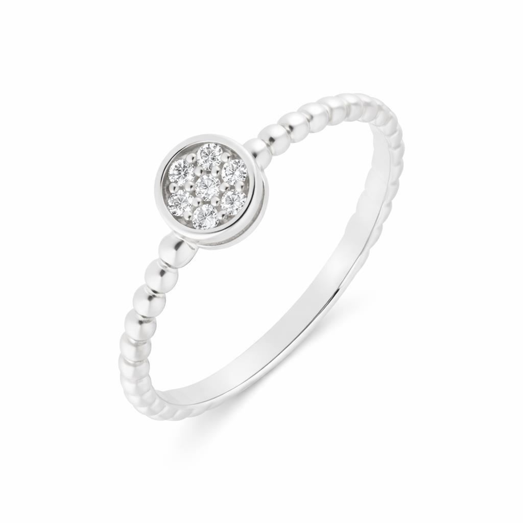 Anillo de oro blanco de 18 kilates y 7 diamantes de 0.09 quilates total.