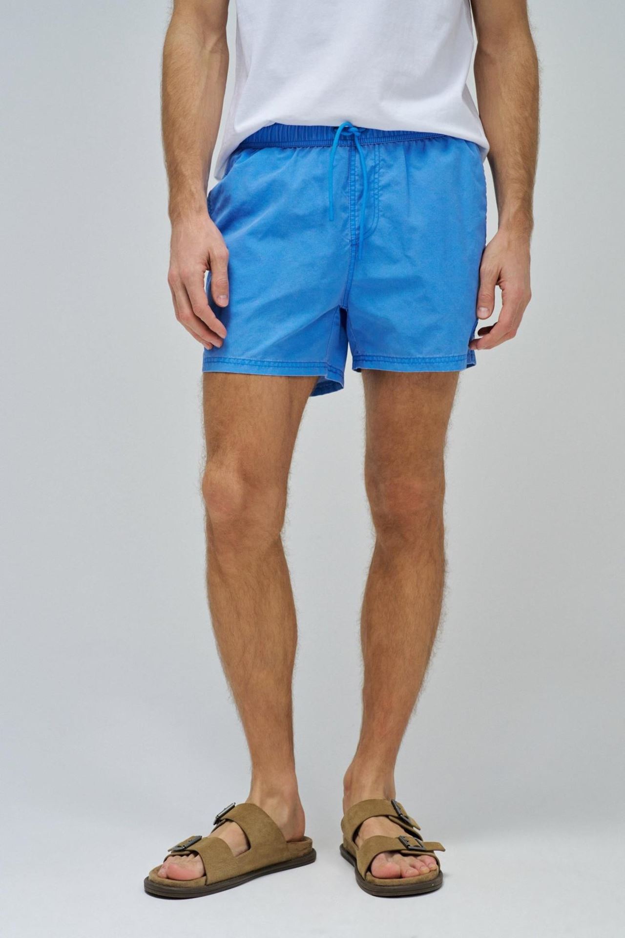 Bañador liso en color azul vintage con cintura elástica y cordón ajustable. Ligero, cómodo y de secado rápido para el verano.