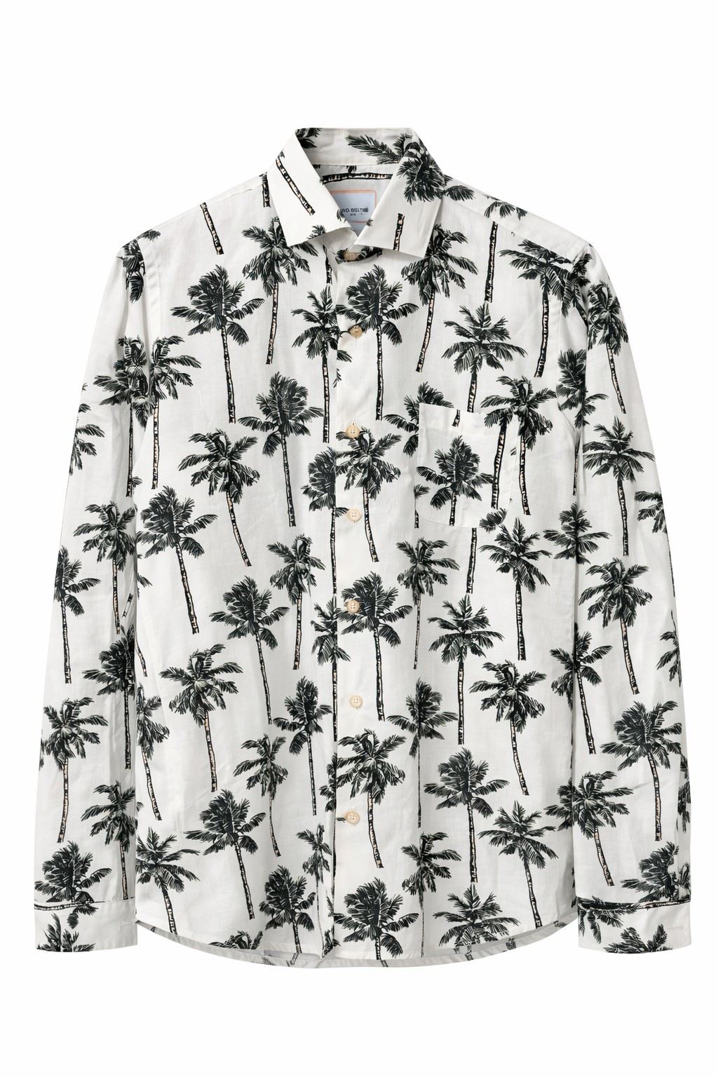 Camisa blanca estampado palmeras algodón