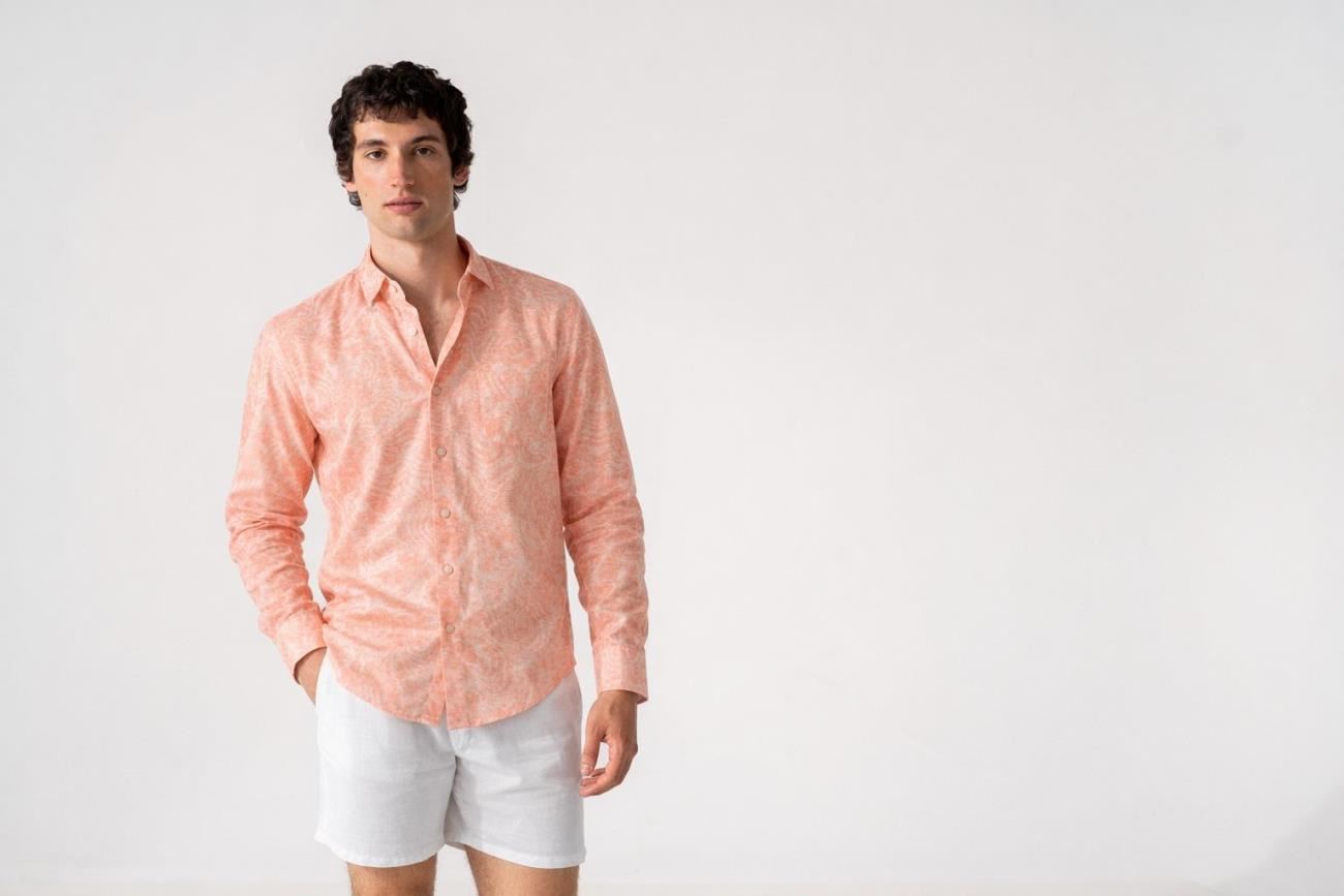 Camisa estampado geométrico verano color salmón