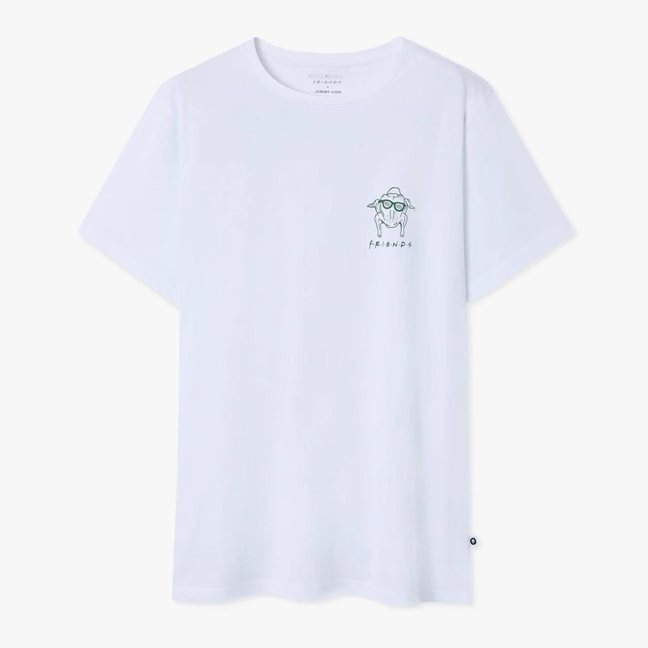 La camiseta Friends You Love Me Tee Blanca forma parte de la colección Friends x Jimmy Lion y rinde homenaje al famoso episodio de Acción de Gracias. Con un diseño unisex y regular fit, está confeccionada en algodón 100% orgánico y fabricada en Portugal. Su tejido extrasuave y grosor de 200 g ofrecen una sensación cómoda y resistente. El estampado de alta calidad muestra a Mónica con el pavo en la cabeza, una de las escenas más recordadas de la serie. Disponible desde la XS hasta la XL, esta prenda combina nostalgia, estilo y durabilidad, ideal para fans de Friends que buscan una camiseta versátil y de alta calidad.
