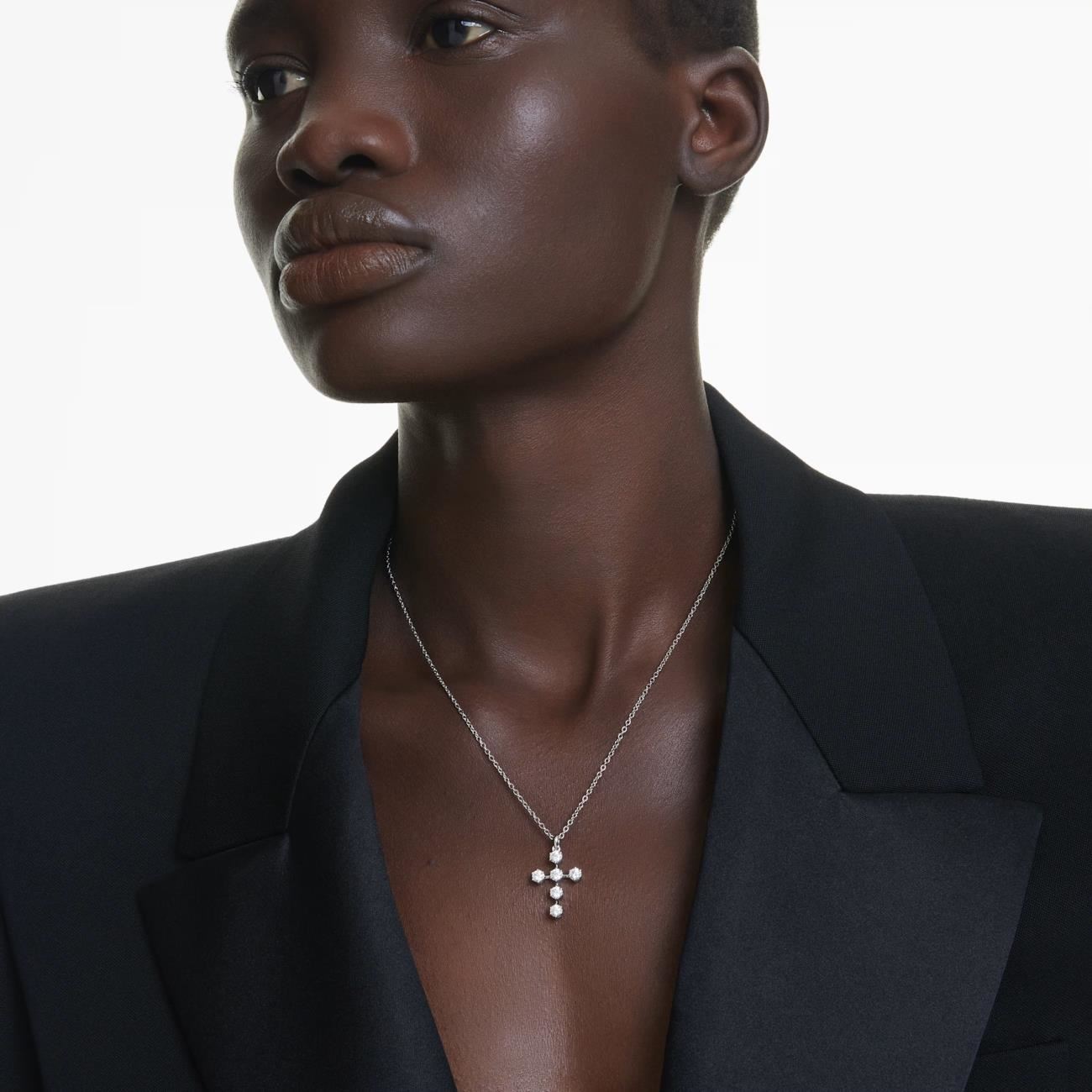Colgante Insigne Talla redonda, Cruz, Blanco, Baño de rodio
