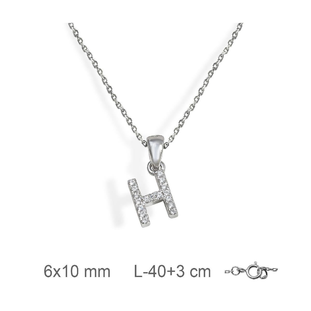 Gargantilla inicial H de plata con baño de rodio y circonitas
