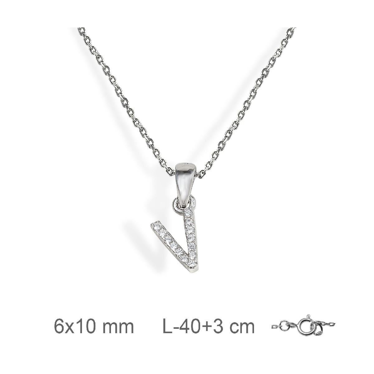 Gargantilla inicial V de plata con baño de rodio y circonitas