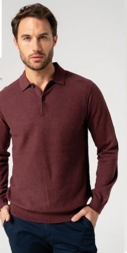 Jersey cuello polo microestructura color berenjena