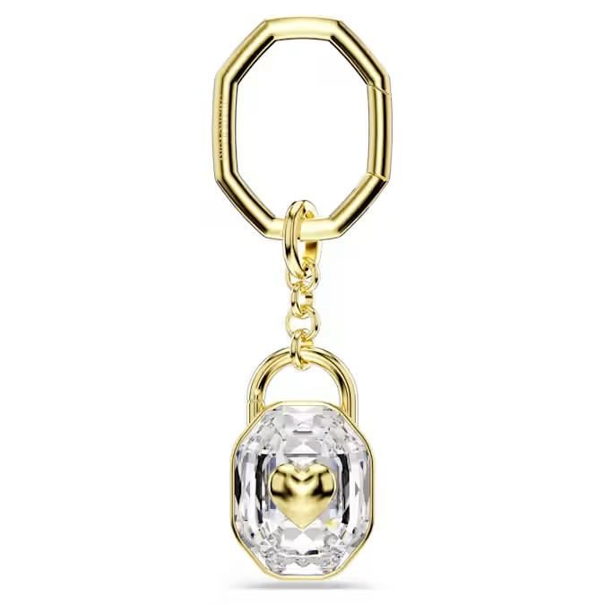 Llavero, Talla ovalada, Blanco, Baño tono oro