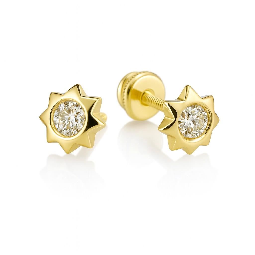 Pendientes de bebé Sol en oro amarillo 18kt y circonitas blancas