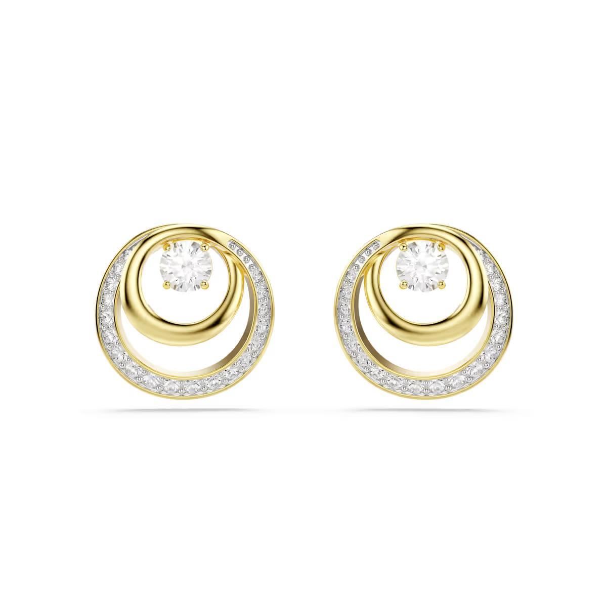 Pendientes de botón Hyperbola, Talla redonda, Blancos, Baño tono oro