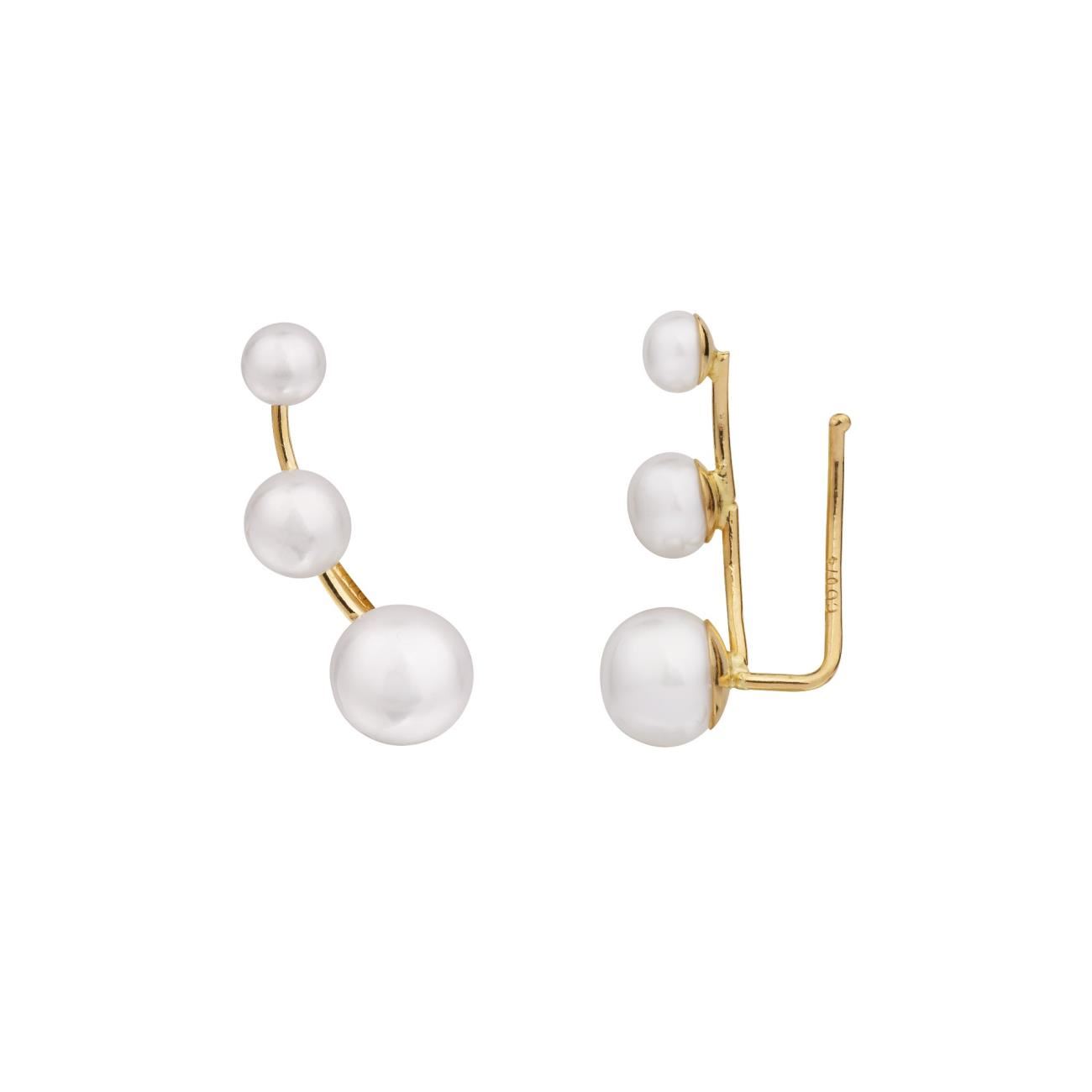 Pendientes trepadores oro amarillo 18kt con tres perlas