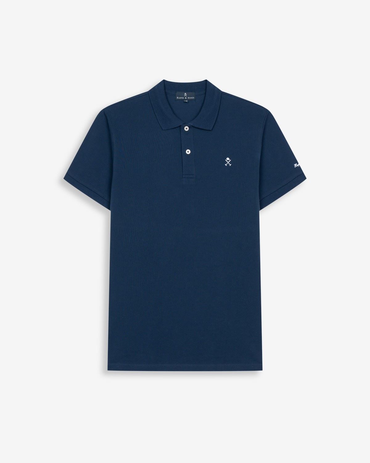 Polo Icon navy blue de Harper and Neyer, manga corta con cuello abotonado y logotipo bordado.