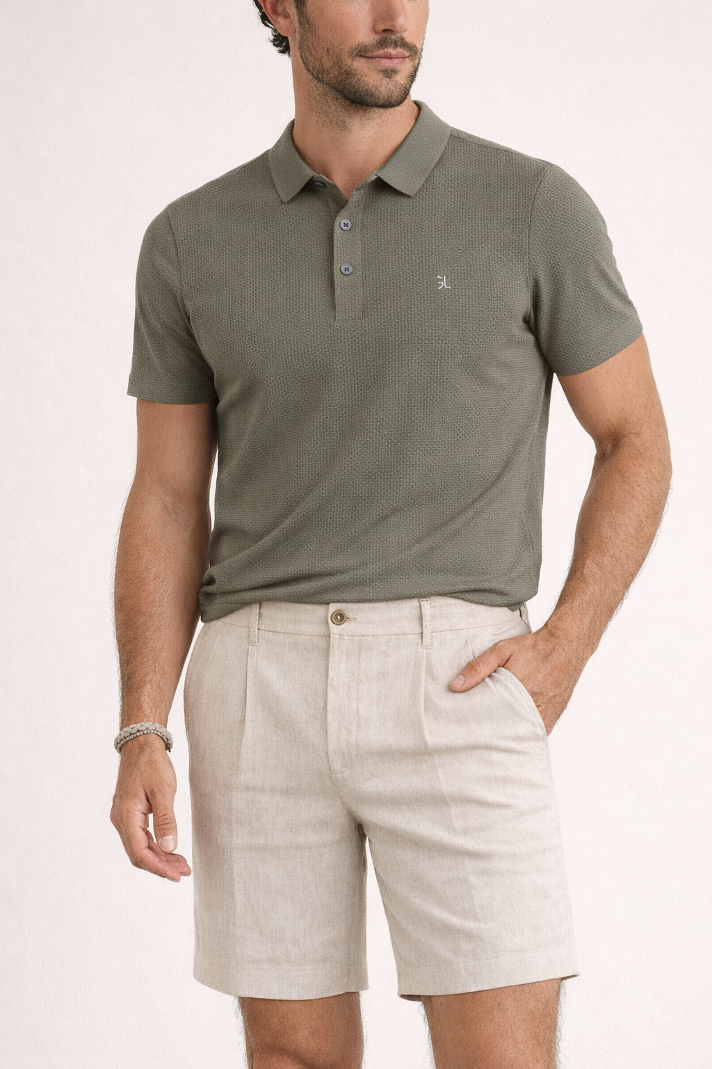 Polo manga corta microestructura geométrica color visón