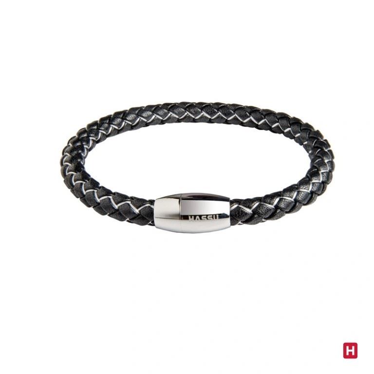 Pulsera de piel negro y acero 19cm