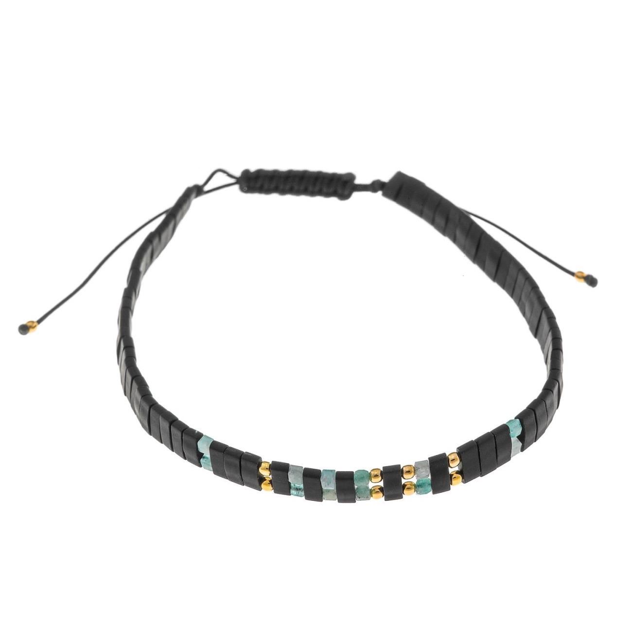 Pulsera plata chapado dorado bolitas facetadas esmeralda rectangulos hematita bolitas doradas hilo negro ajustable