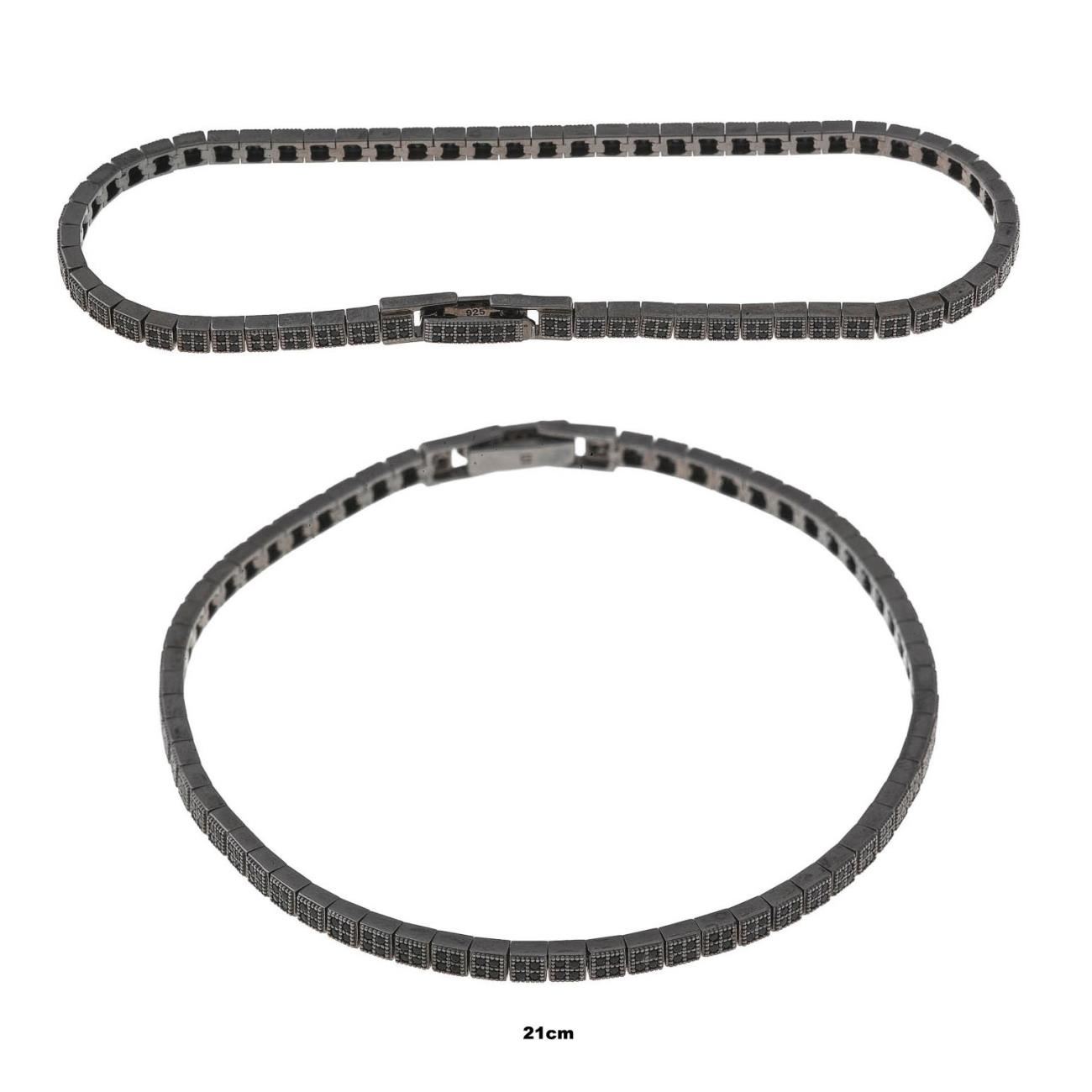 Pulsera plata chapado rutenio cuadrados circonitas negras