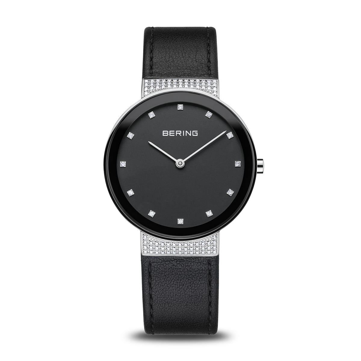 Reloj Classic acero baño rodio con circonitas y correa piel 35mm