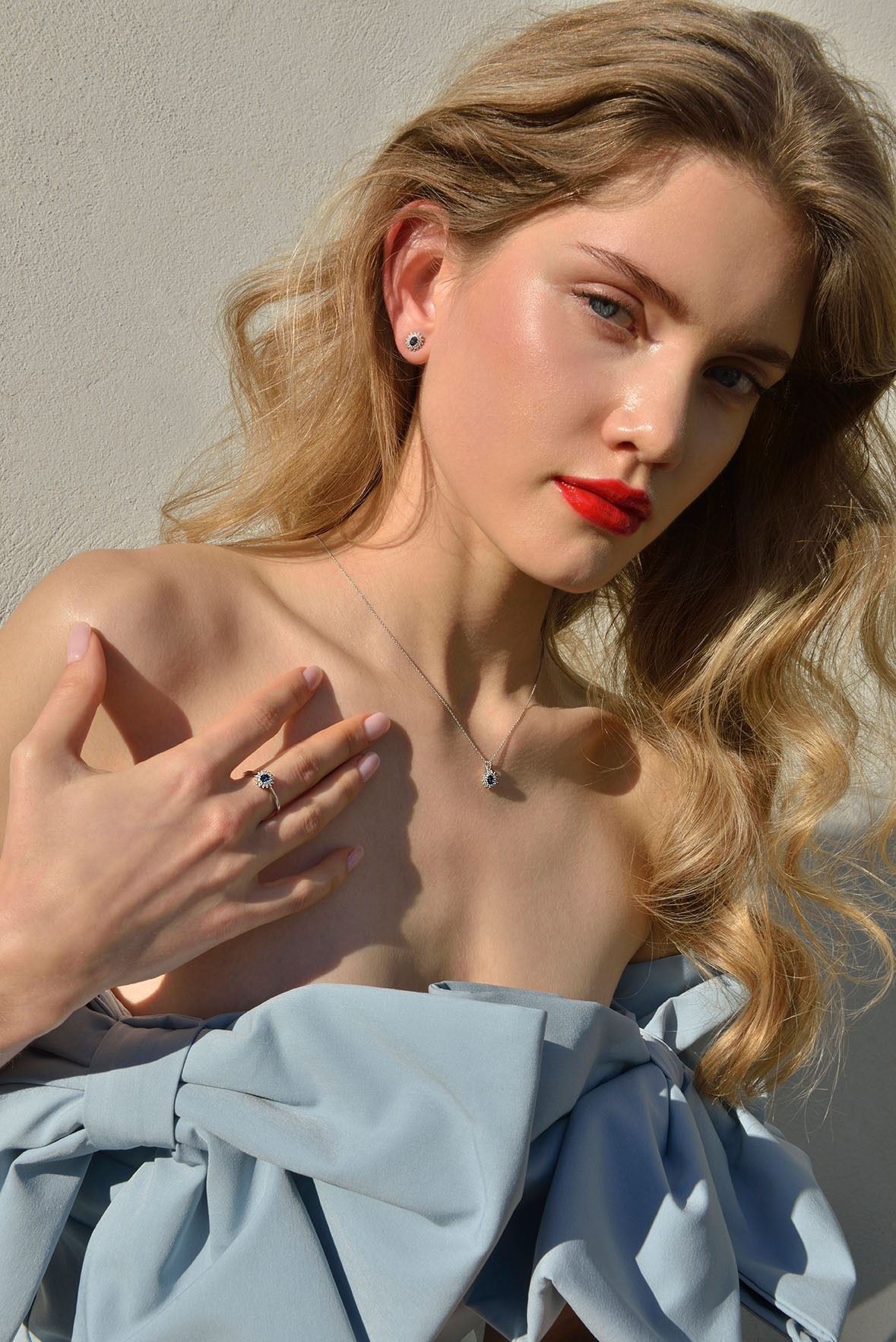 Sortija Crown plata rodio circonita azul zafiro ovalada