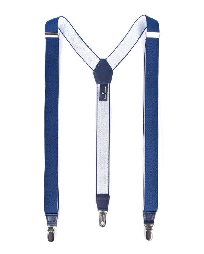 Tirantes elásticos en color marino, con acabados en piel y clips metálicos. Elegancia y sujeción para cualquier ocasión.
