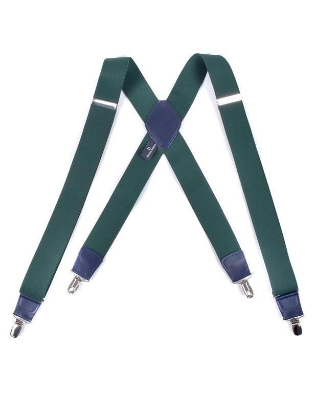 Tirantes lisos verde pino con doble trasera y detalles en piel de Miguel Bellido. Características de producto Marca: Miguel Bellido Tipo: Tirantes Color: Verde pino Estilo: Liso Diseño: Doble trasera (forma Y) Material: Banda elástica de alta resistencia Detalles en piel auténtica Herrajes metálicos resistentes Ajustables para un mejor ajuste Cierre mediante pinzas metálicas