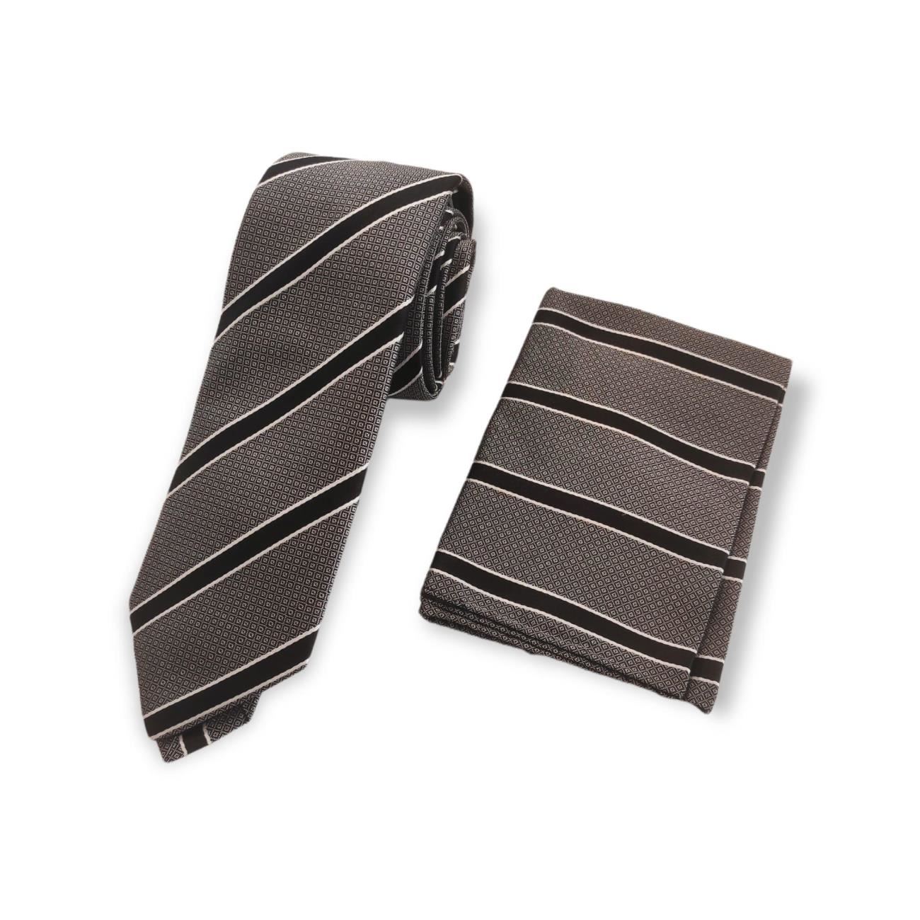 Corbata y pañuelo seda raya negra