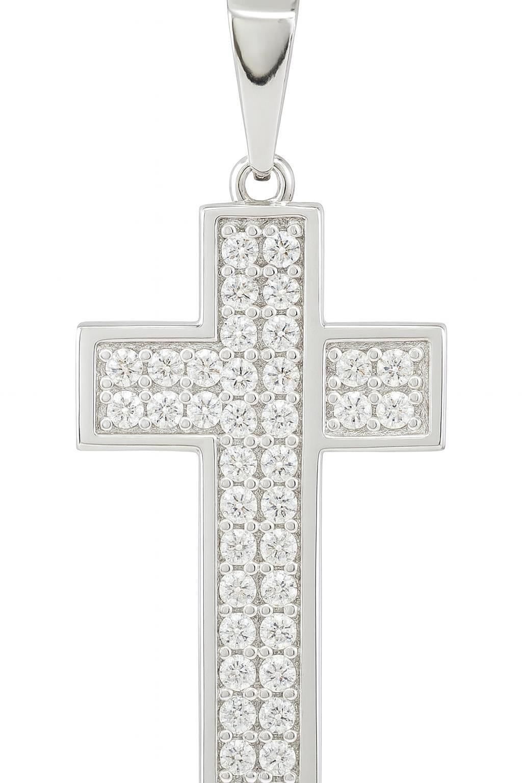 Cruz de oro blanco 18kt y doble carril circonitas blancas engastadas con garras