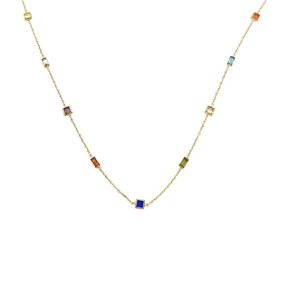 Gargantilla cadenita oro 18kt con circonitas cuadradas multicolor
