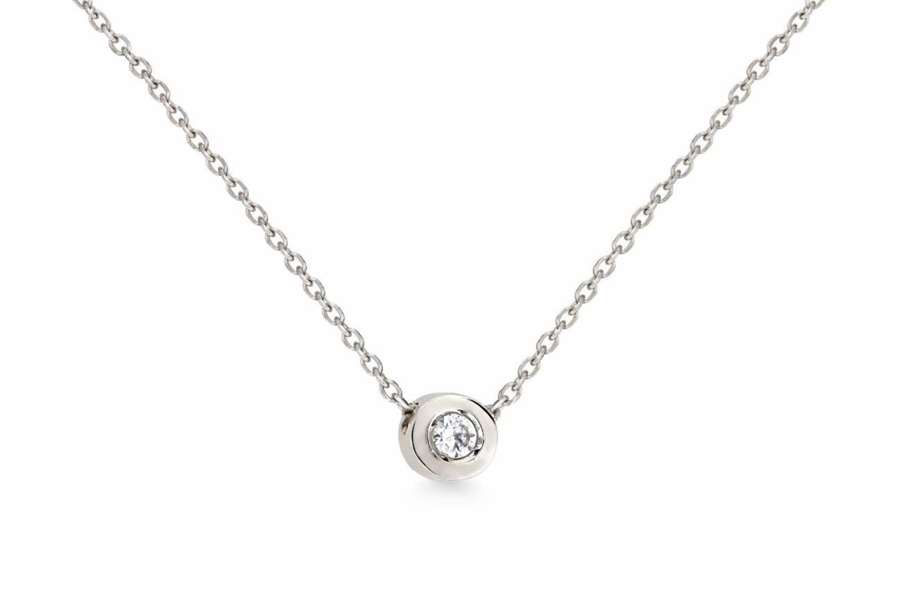 Gargantilla en oro blanco 18kt y chatón con 1 brillante 0,20ct, Color G, Pureza VS