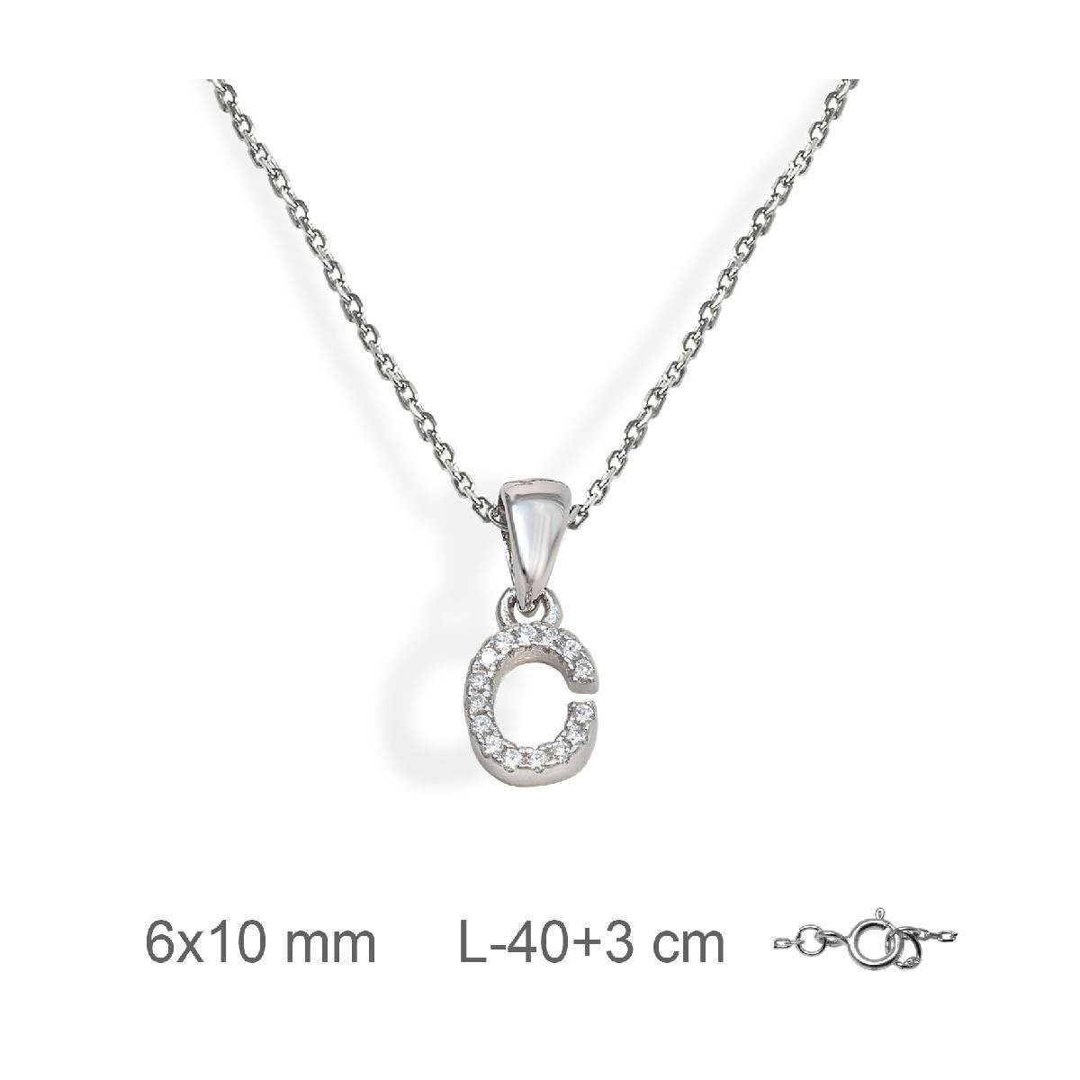 Gargantilla inicial C de plata con baño de rodio y circonitas