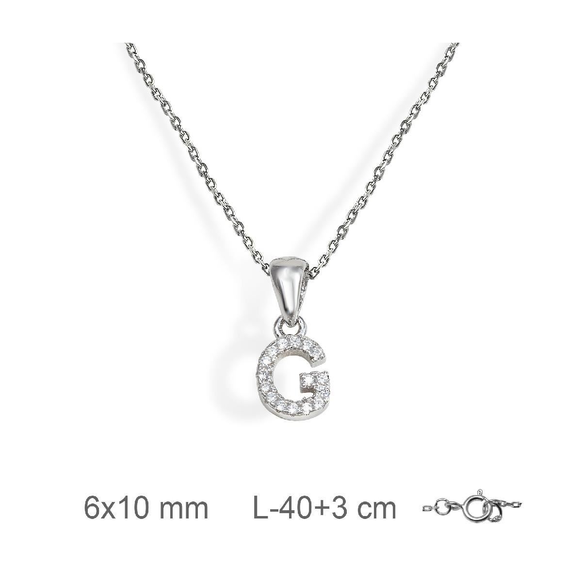 Gargantilla inicial G de plata con baño de rodio y circonitas