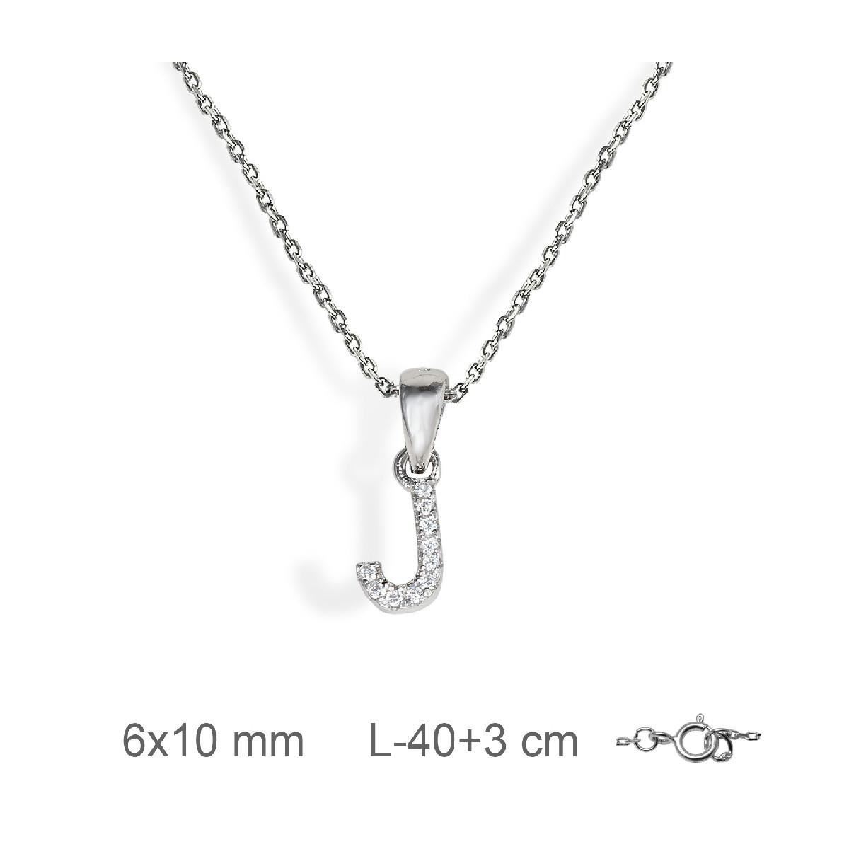 Gargantilla inicial J de plata con baño de rodio y circonitas