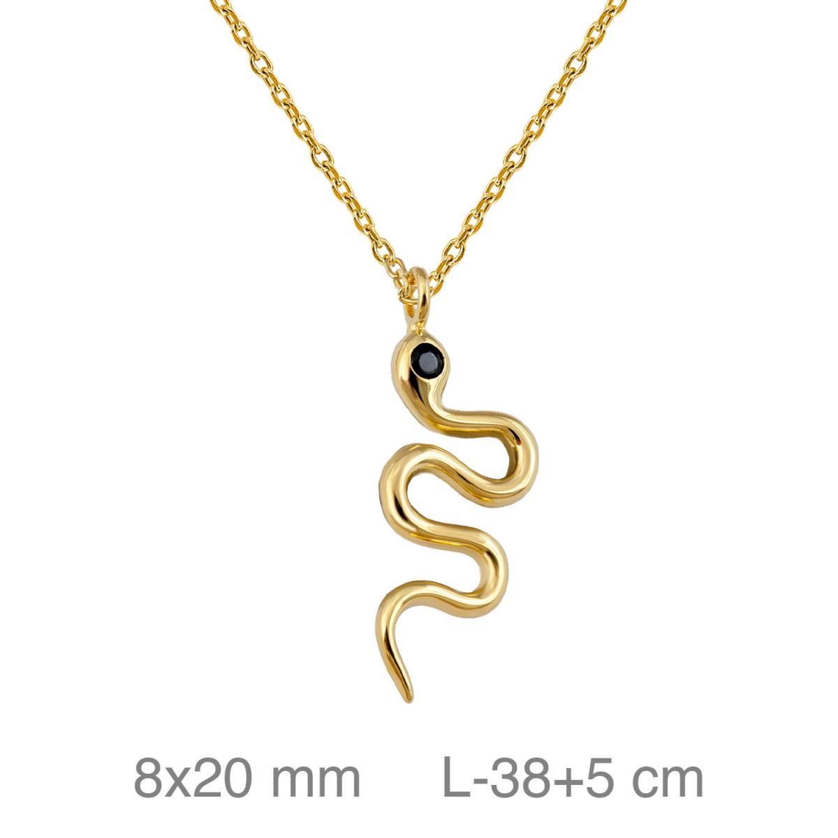 Gargantilla plata baño oro con serpiente ojo piedra negra