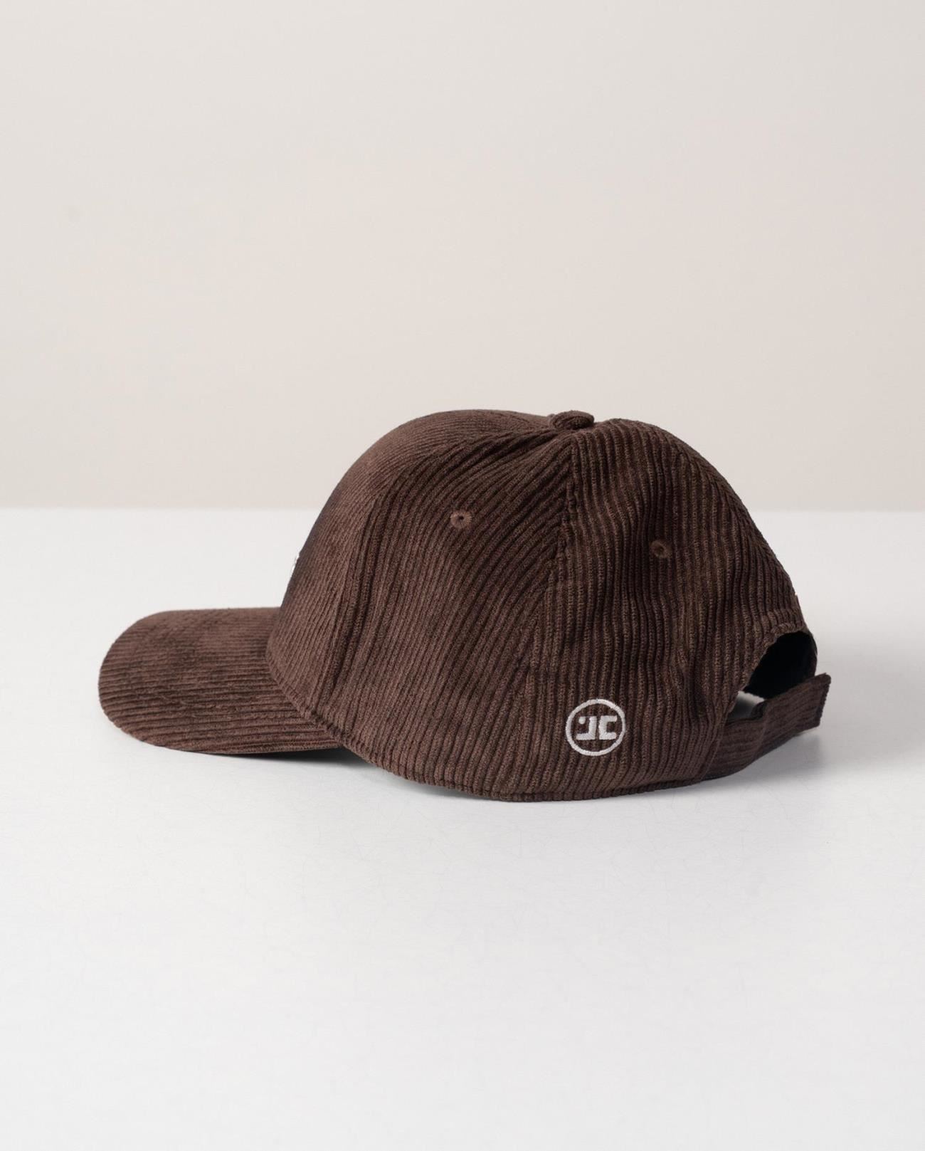 Gorra de pana marrón con logo bordado en contraste. Diseño moderno, cómodo y versátil para un look casual.