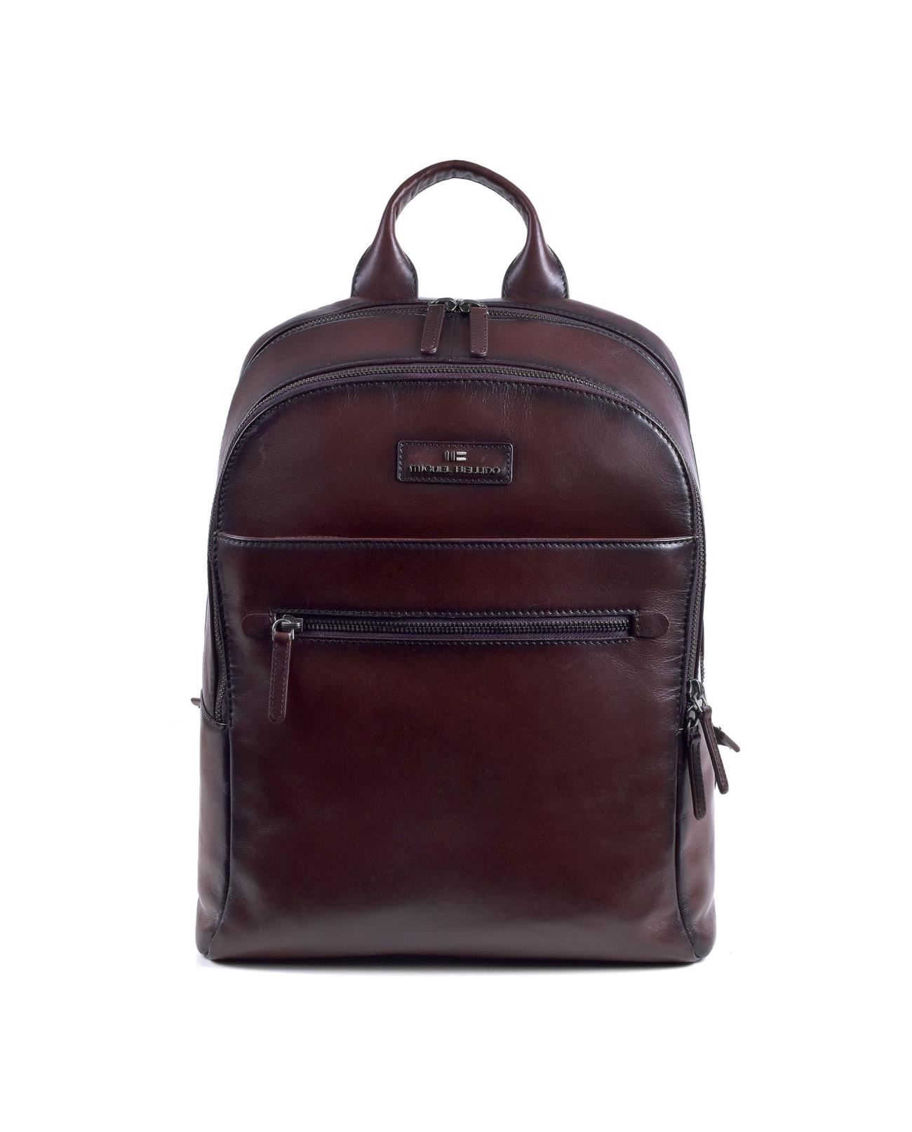 Mochila de piel vacuno marrón con compartimentos múltiples de Miguel Bellido.