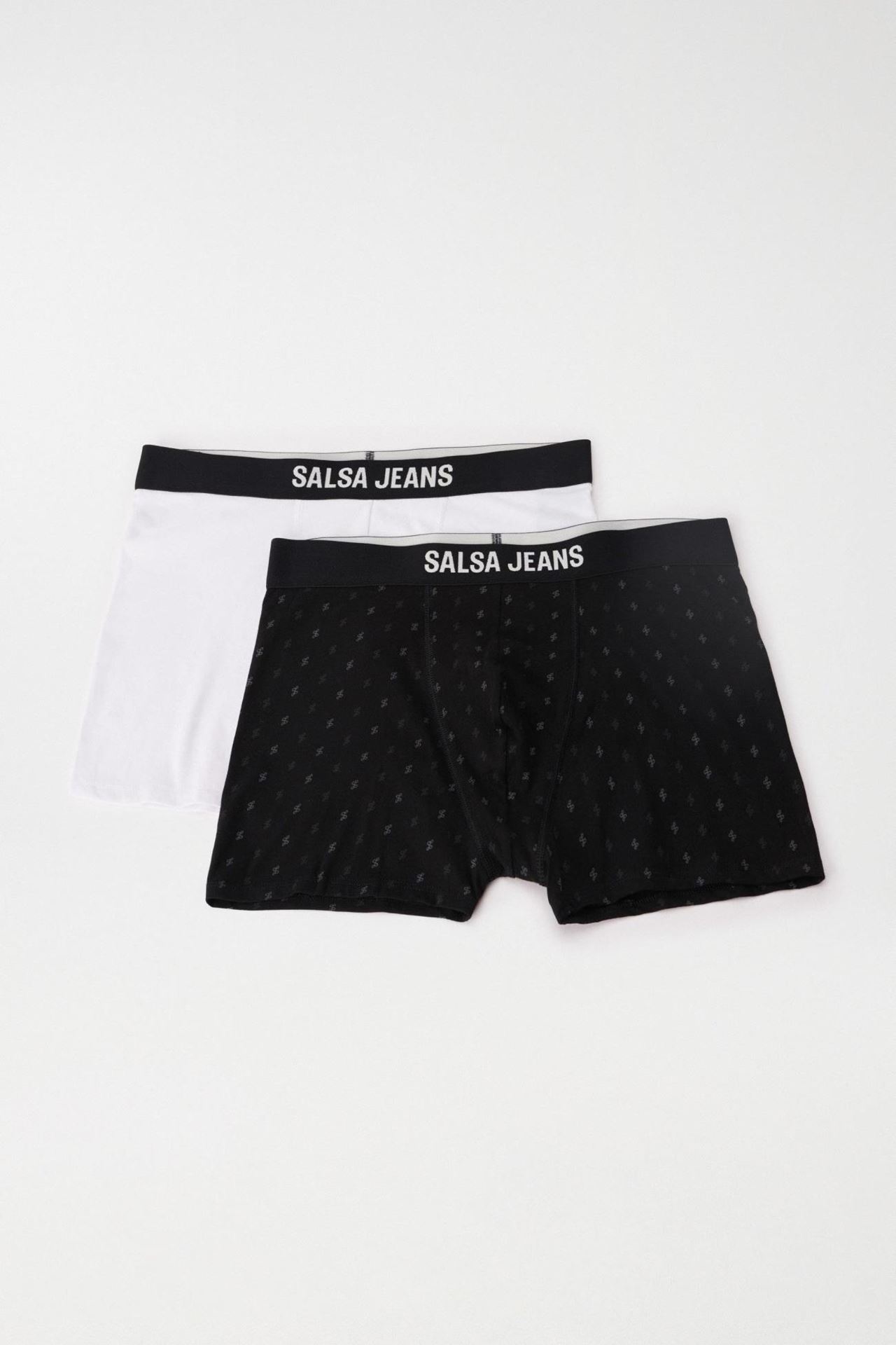 Pack 2 calconcillos boxer negro estampado logo y blanco liso