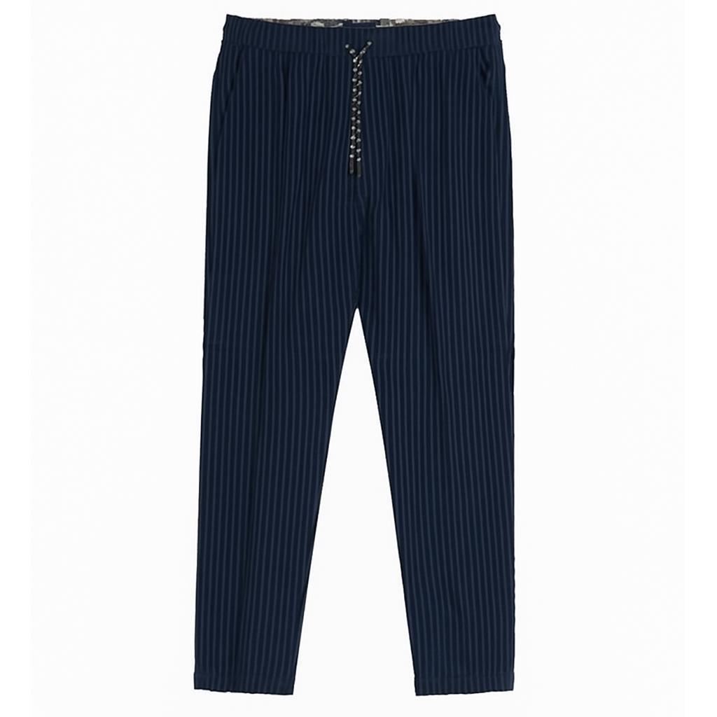 Pantalón slim fit de algodón canalé azul marino con rayas verticales de Gianni Lupo. Cómodo y elegante.