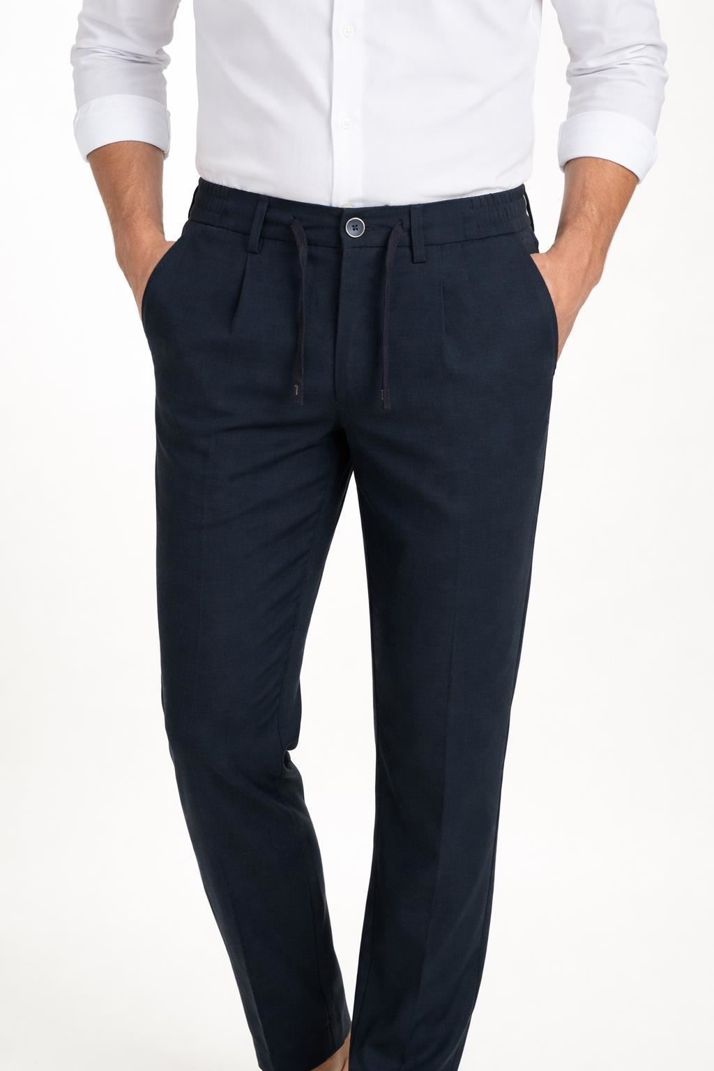 Su pinza en el delantero eleva la prenda más allá de lo casual.