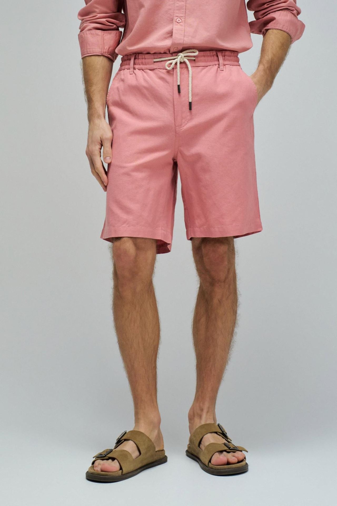 Pantalón corto rosa mezcla lino y algodón