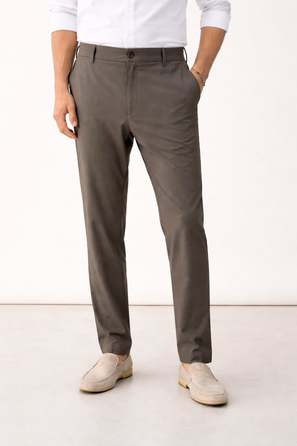 Pantalón slim fit cintura elástica tejido técnico caqui