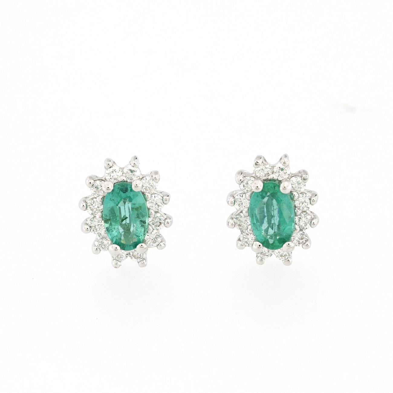 Pendientes de oro blanco y esmeralda 0,58ct y brillantes 0,24ct