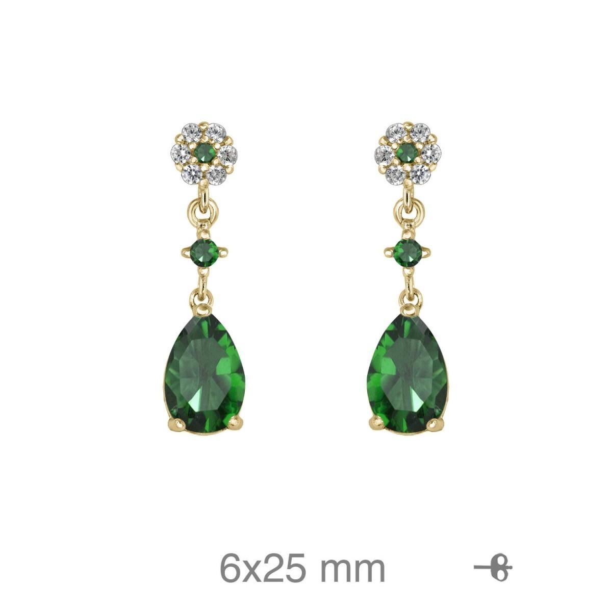 Pendientes de plata baño oro circonitas color esmeralda