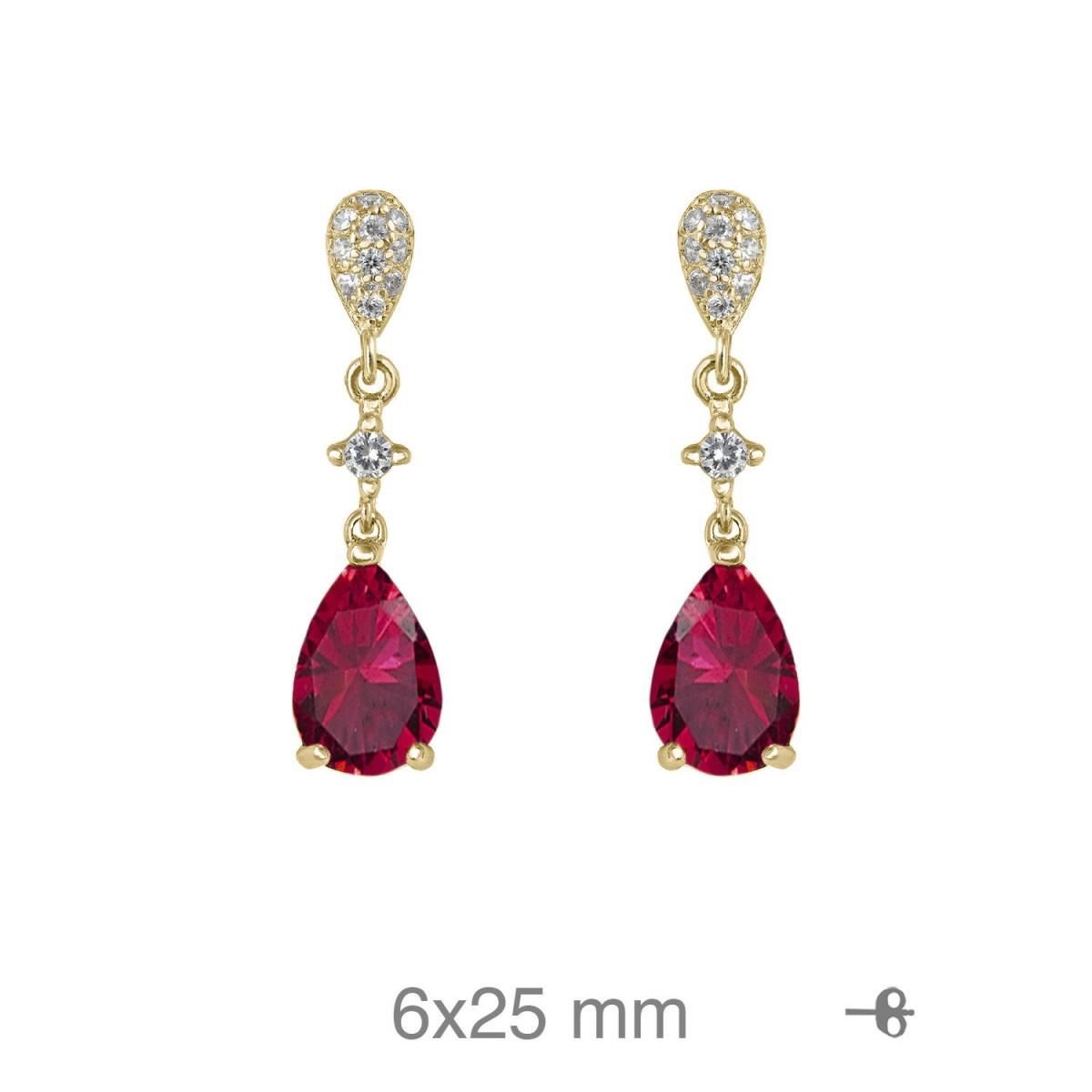 Pendientes de plata baño oro circonitas color rubí