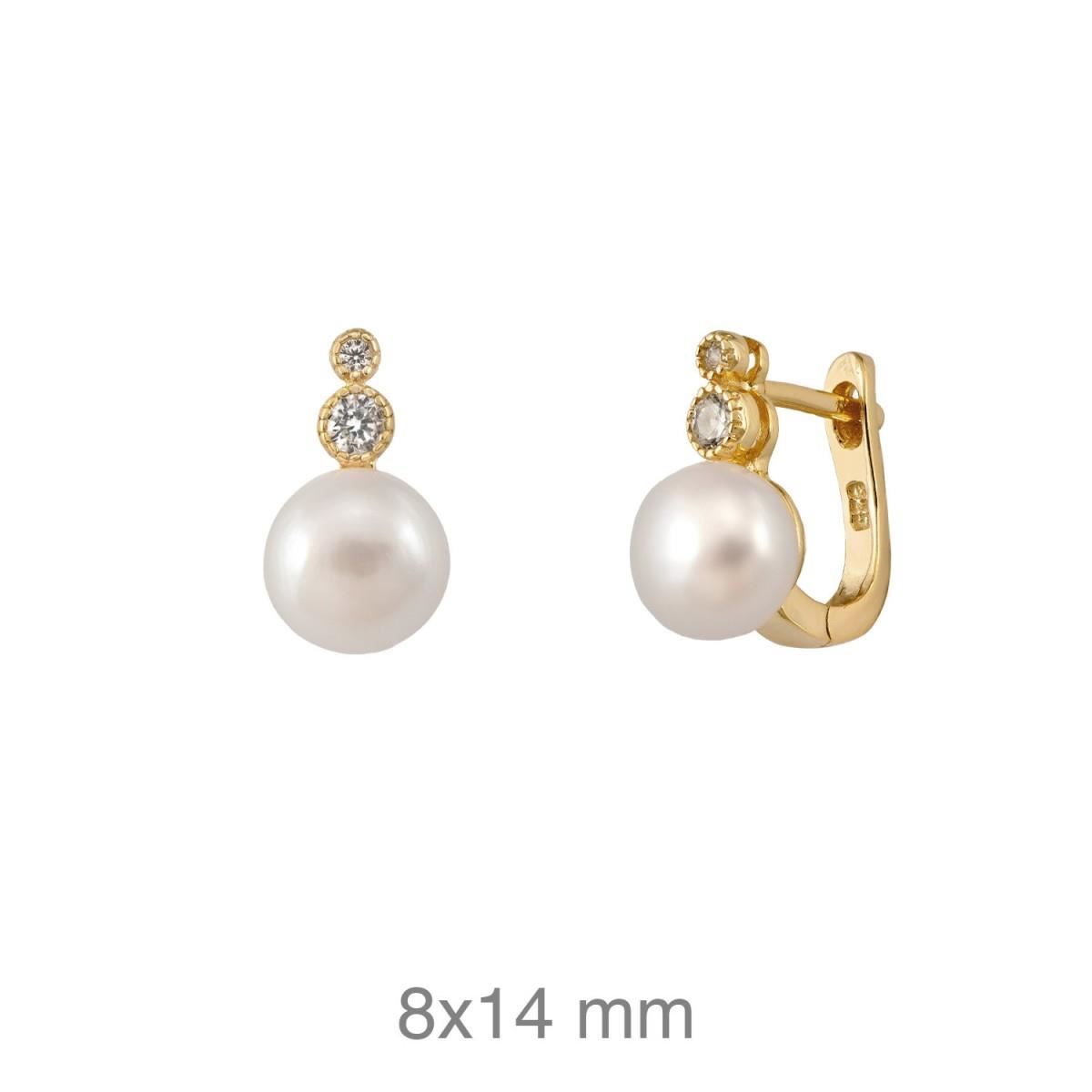 Pendientes de plata baño oro con circonita y perla cierre catalan