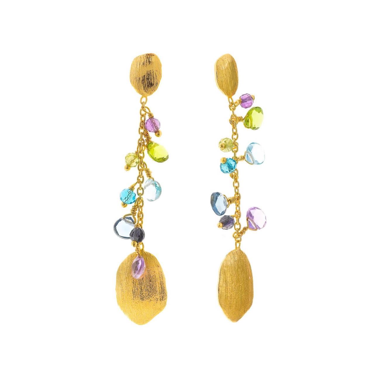 Pendientes metal chapado dorado ovalos cadena hidro peridoto topacio azul iolita amatista ovalos facetados