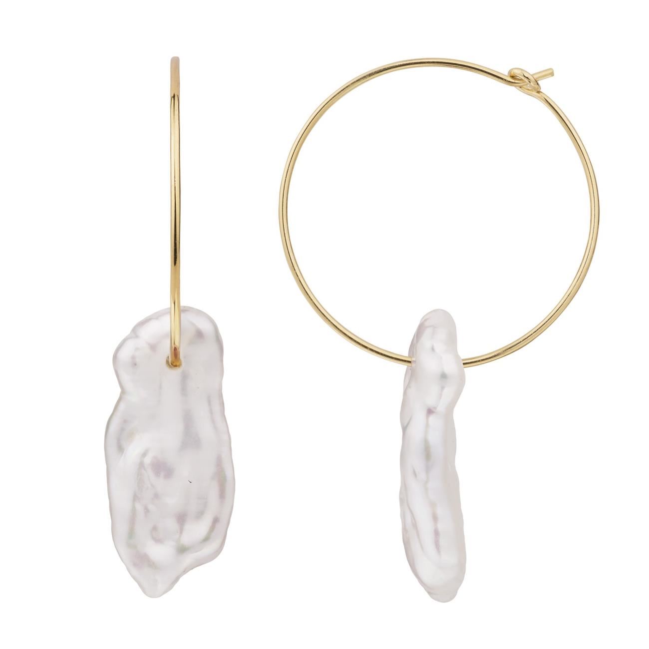 Pendientes oro amarillo 18kt aro 20mm con perla barroca