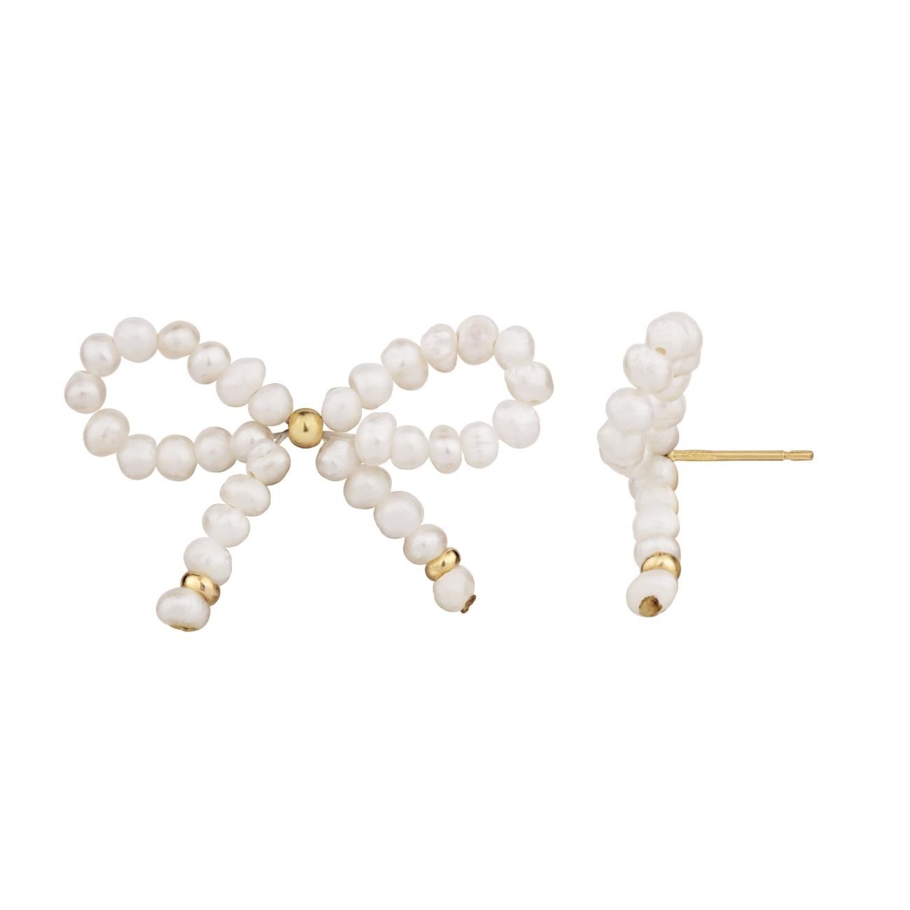 Pendientes oro amarillo 18kt lazo perlas agua dulce 3mm
