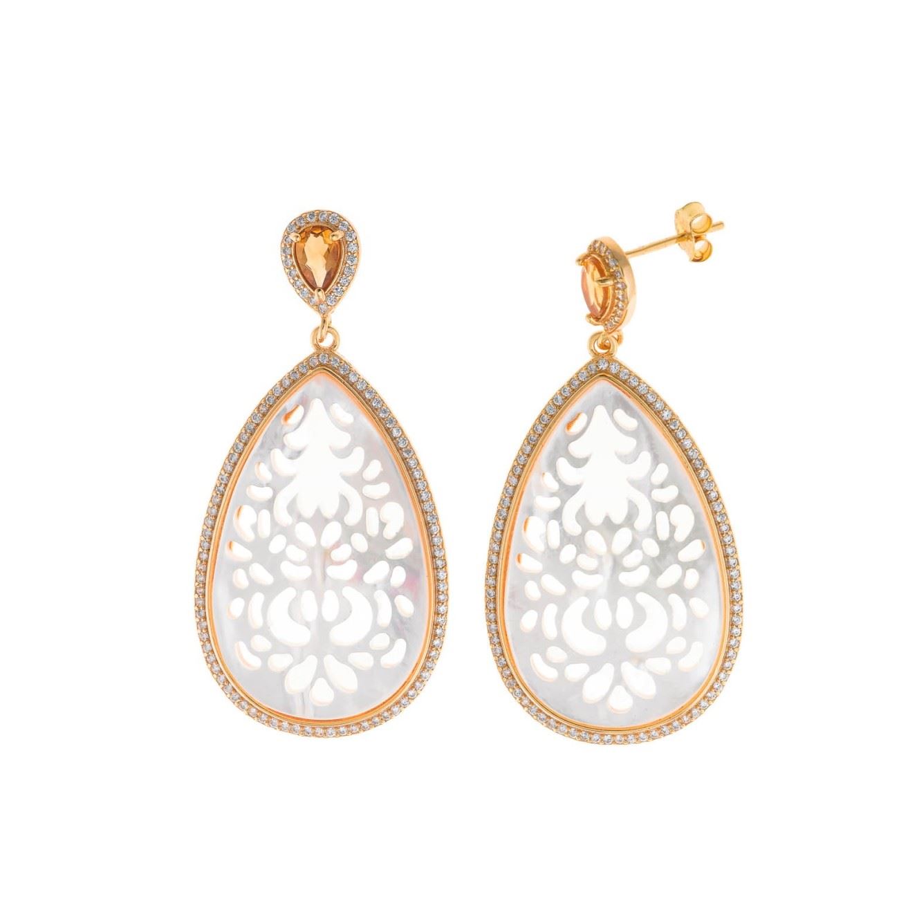 Pendientes plata chapado dorado pera circonita