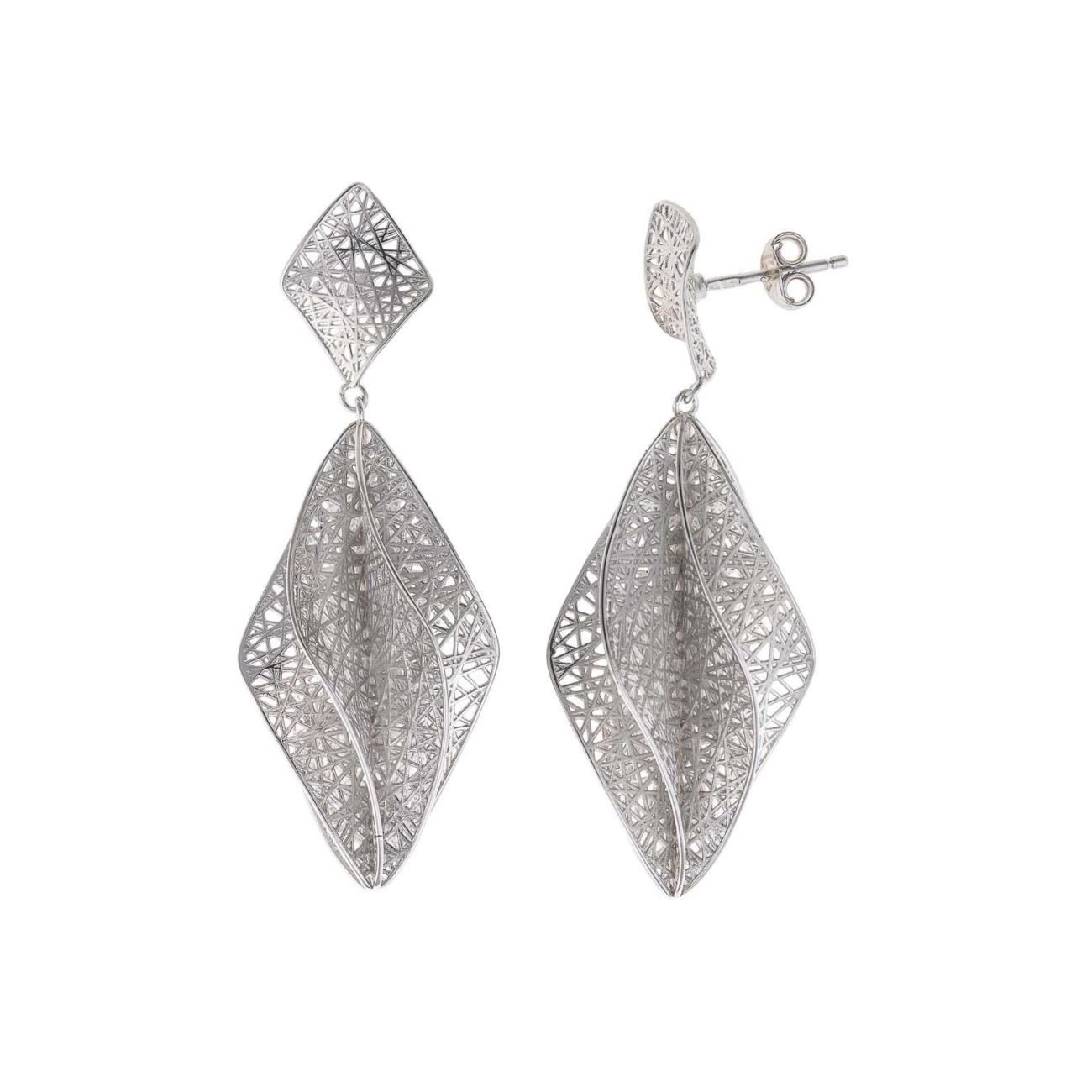 Pendientes plata rodio rombos superpuestos calados filigranas geometricas