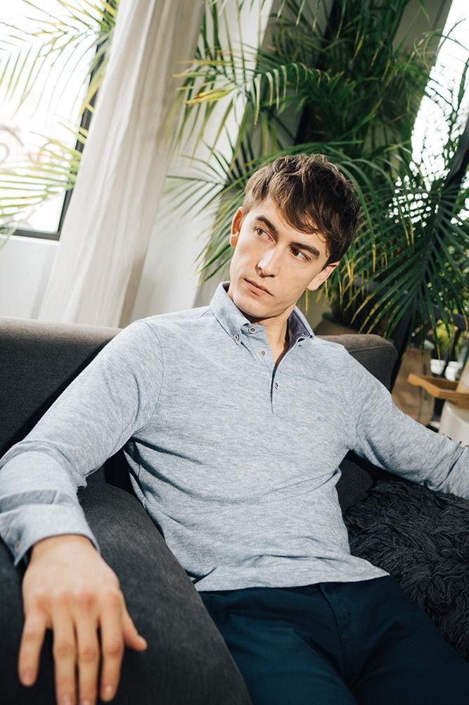 Polo manga larga azul nórdico jaspeado Darío Beltrán