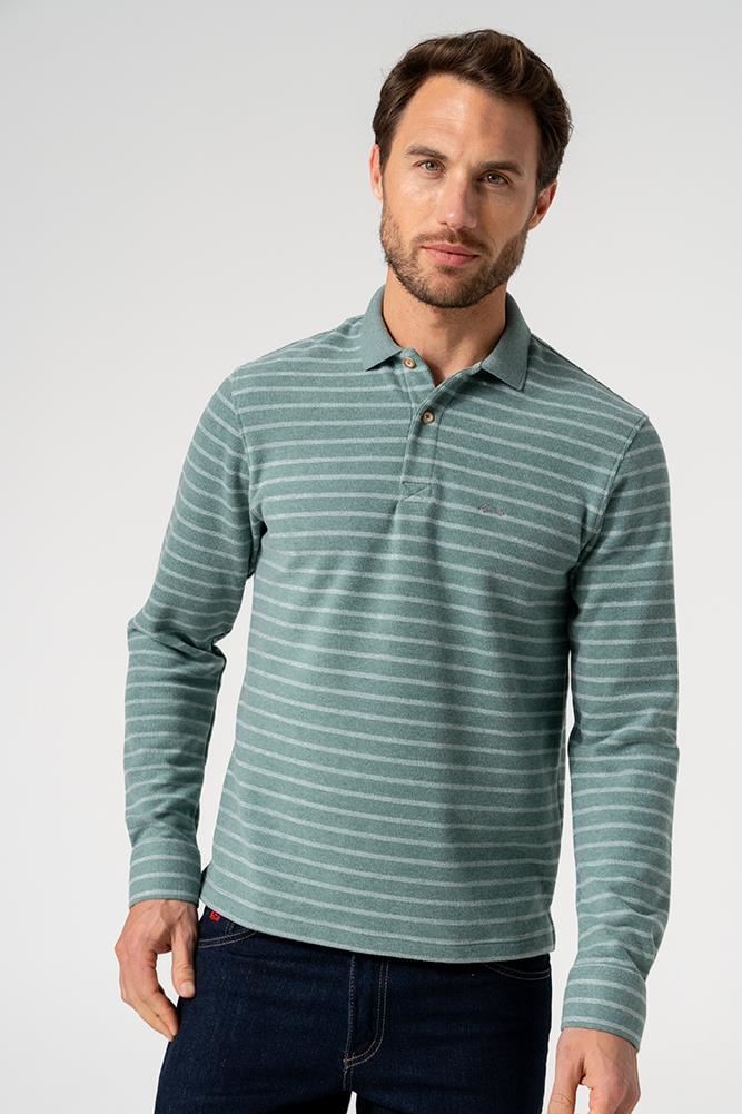 Polo manga larga verde agua rayas horizontales Darío Beltrán