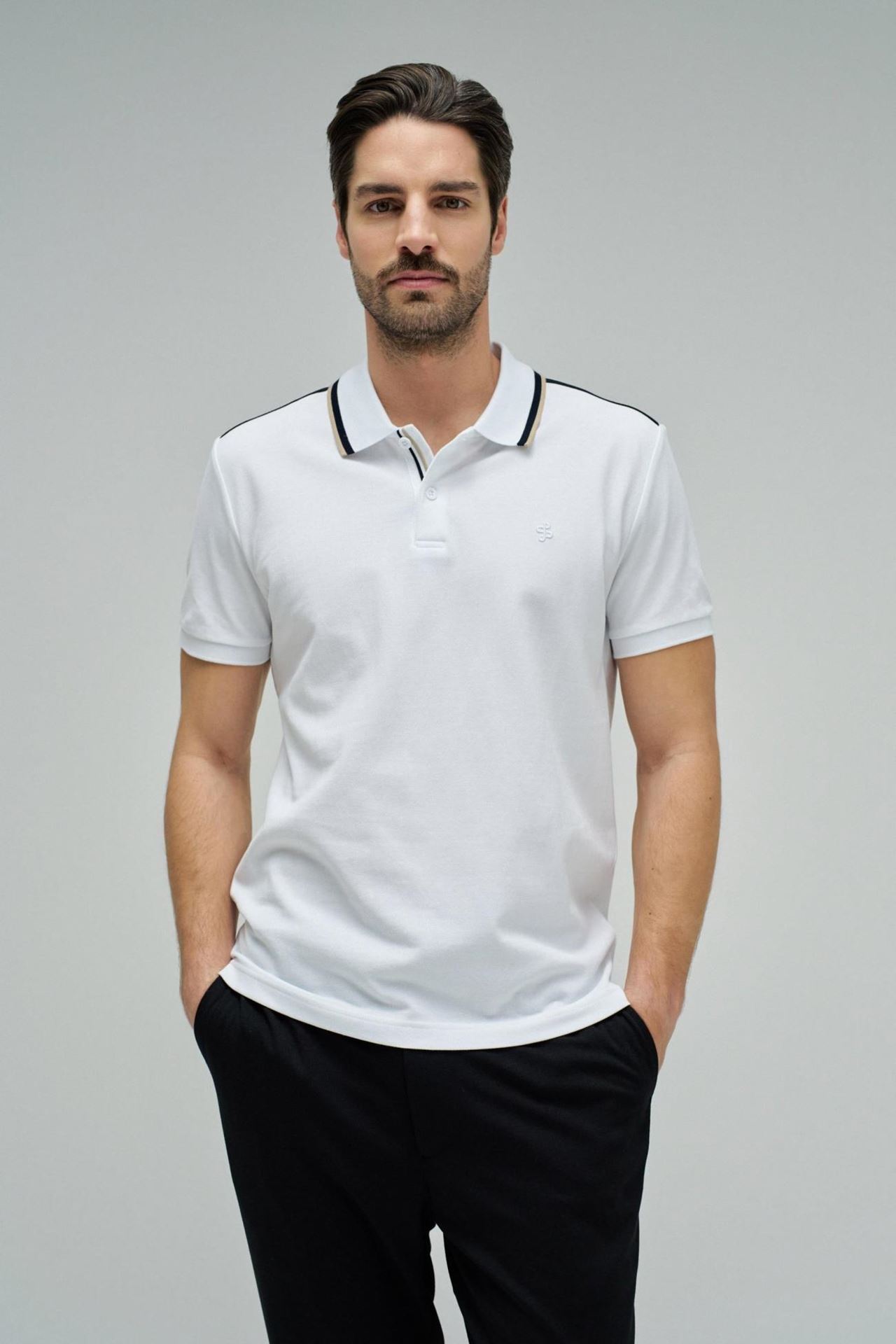 Polo Regular Fit sport tape blanco